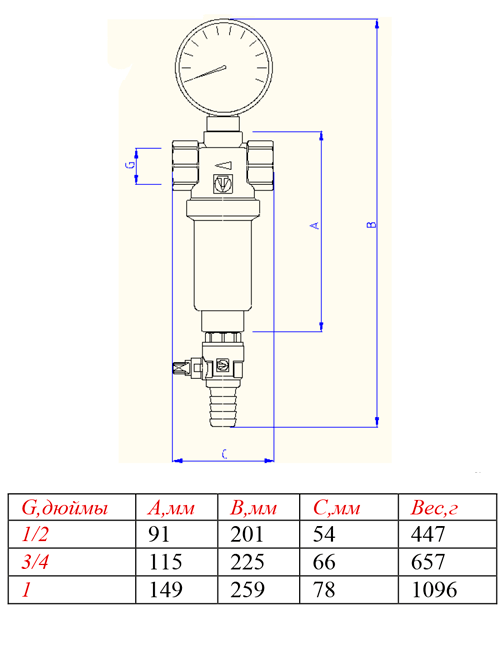 - Манометр, предназначенный осуществлять контроль давления в системе и уровня загрязнения сетки.