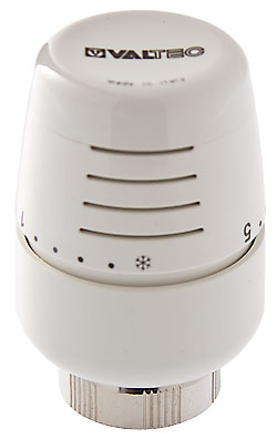 (VT.5000.0) Термостатическая головка устанавливается на термостатический радиаторный клапан и предназначена для автоматического регулирования расхода теплоносителя через отопительный прибор в зависимости от температуры воздуха в помещении. Использование регулирующих клапанов VALTEC c термостатической головкой позволяет автоматически поддерживать заданную температуру в помещении с точностью до 1 С. Наполнитель сильфона (термочувствительного элемента) – толуол. Диапазон регулирования температуры воздуха – от 6,5 до 28 С. Присоединение головки к клапану осуществляется с помощью накидной гайки с резьбой М30*1,5.