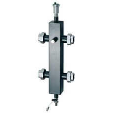 (VT.VAR00.G) Входящий в систему модулей быстрого монтажа VARIMIX гидравлический разделитель (гидрострелка) – устройство, позволяющее просто и эффективно разделить и гидравлически увязать между собой контуры источника и потребления тепла (при использовании в обвязке котельной). Корпус гидрострелки изготовлен из бронзы марки OTS 60PB2 (EN 1982-00). Материал уплотнений – пероксидный EPDM. В комплект входят автоматический воздухоотводчик, шаровые краны – присоединения воздухоотводчика и дренажный, измерительные приборы – термоманометр, термометр, стальные кронштейны для настенного крепления модуля. Предусмотрены два закрытых пробками гнезда погружных датчиков температуры (штуцеры). Гидрострелка предназначена для систем тепловой мощностью не выше 104 кВт (Δt = 20 °С).