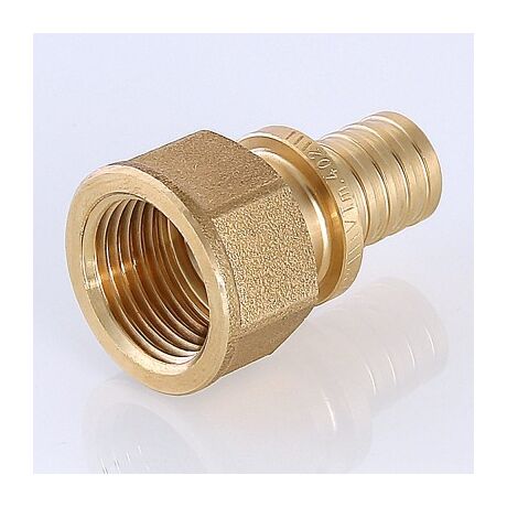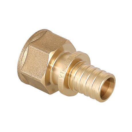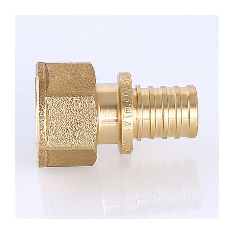 Фитинг надвижной VTm.402.G – прямой латунный аксиальный фитинг с переходом на внутреннюю резьбу для монтажа соединений труб из сшитого полиэтилена и полиэтилена повышеной термостойкости.