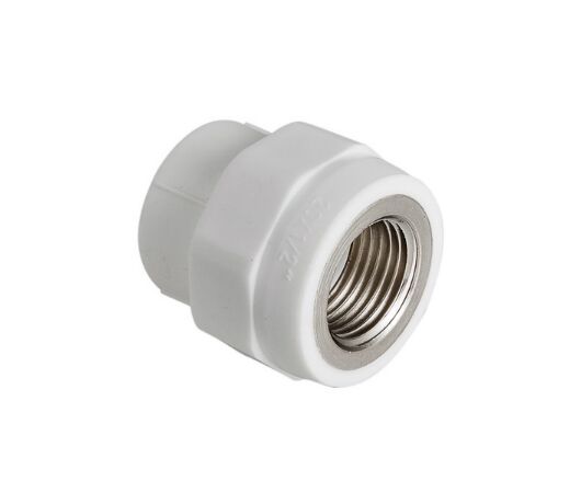 (VTp.702.0) Муфта полипропиленовая с переходом на внутреннюю резьбу для соединения полипропиленовой трубы и компонента инженерной системы с резьбовым подключением. Резьба фитинга – внутренняя трубная по ГОСТу 6357. Предусмотрен участок корпуса шестигранной формы, под гаечный или трубный рычажный ключ.