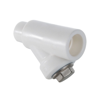 (VTp.787.0) Фильтр с корпусом из полипропилена и сетчатым элементом из нержавеющей стали марки AISI 304, предназначенный для очистки транспортируемой жидкости от нерастворимых примесей размером от 300 мкм. Используется в составе систем из полипропиленовых труб c рабочей температурой до 90 °С и при номинальном давлении (PN) 25 бар. Пробка и закладная деталь фильтра выполнены из латуни марки CW617N, никелированы, уплотнительная прокладка – из синтетического каучука EPDM. Монтаж фильтра производится методом раструбной сварки. Присоединения – внутреннее/наружное.